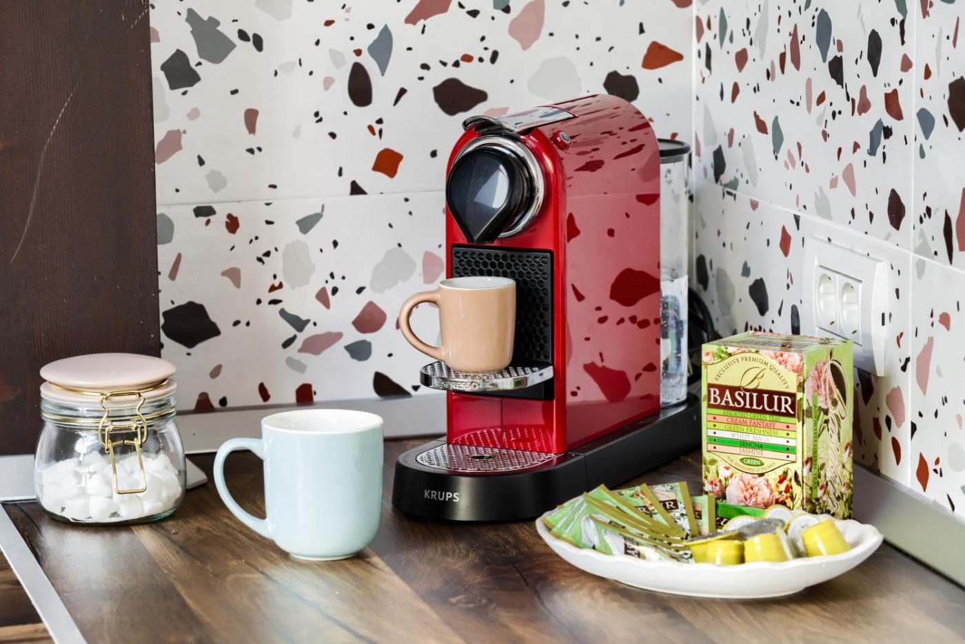 Two-Bedroom Family Apartment. The hot tub is the standout feature of this apartment. Boasting a private entrance, this air-conditioned apartment comes with 1 living room, 2 separate bedrooms and 2 bathrooms with a walk-in shower and a bath. Guests can make meals in the kitchen that features a stovetop, a refrigerator, kitchenware and an oven. The spacious apartment features a washing machine, a tea and coffee maker, a seating area, a dining area and a flat-screen TV with streaming services. The unit has 3 beds.