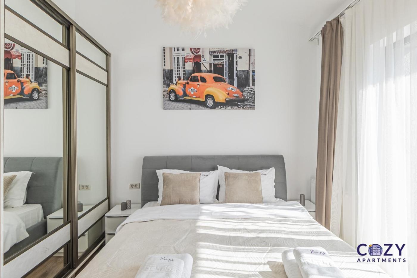COZY Deluxe 2 Bedrooms Apartment with Terrace - Coresi Mall Brasov is located in Braşov, 5.8 km from The Black Tower, 6 km from Strada Sforii, and 7.2 km from The White Tower. The air-conditioned accommodation is 1.9 km from Aquatic Paradise, and guests can benefit from private parking available on site and free WiFi. The property is soundproof and is situated 5.4 km from Council Square.