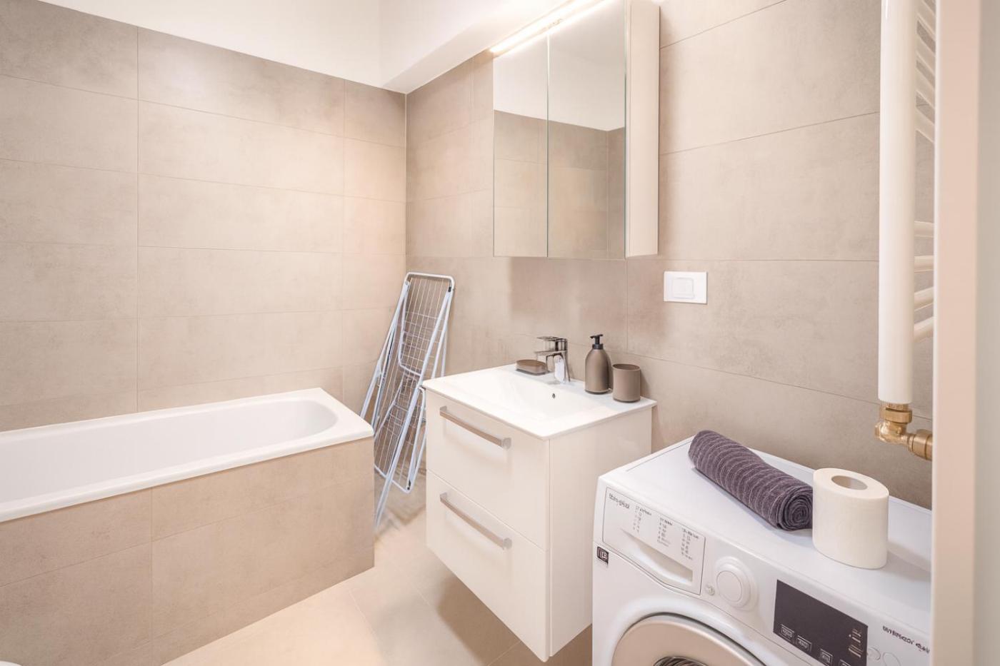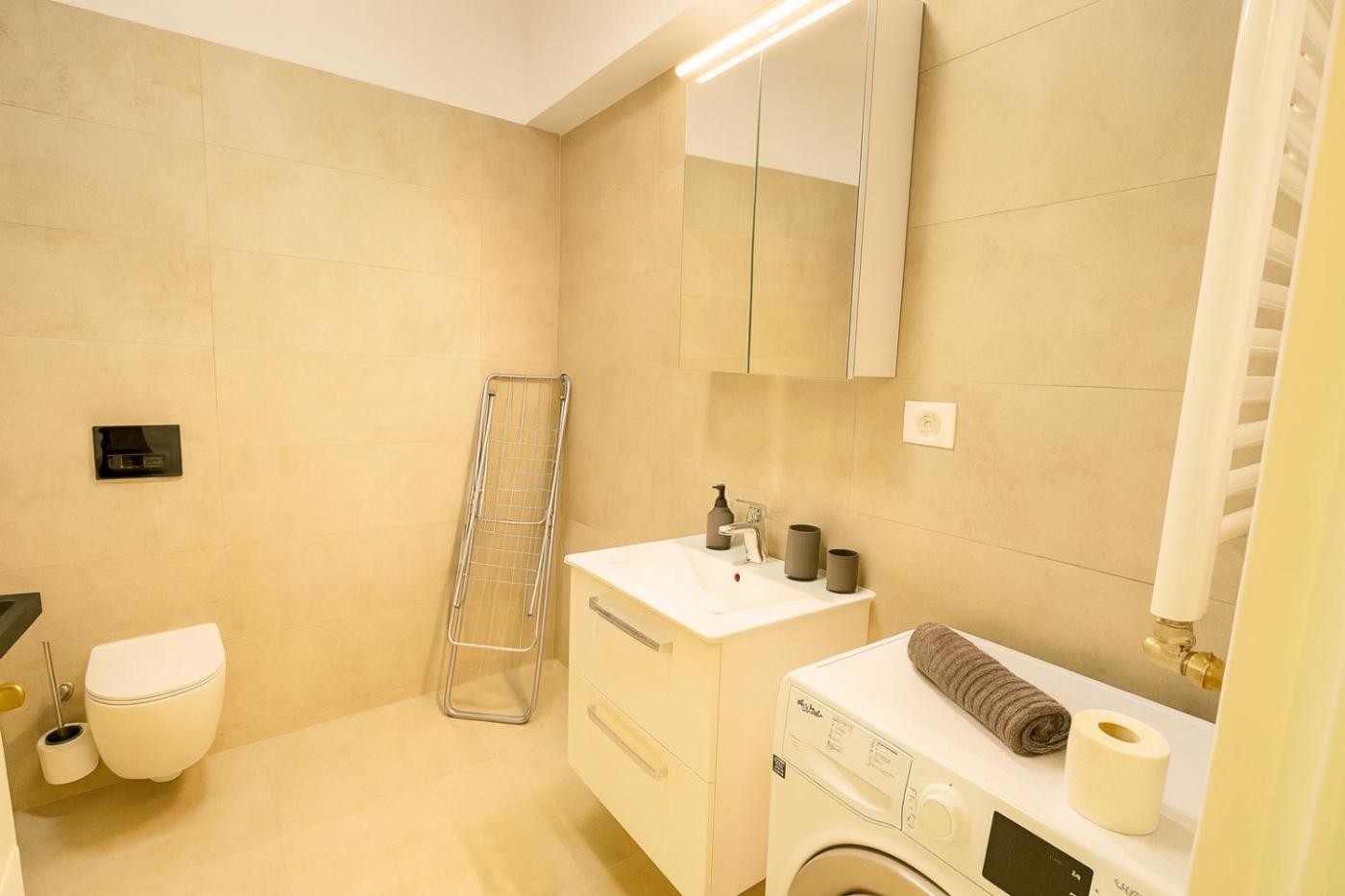 Deluxe One-Bedroom Apartment. The air-conditioned apartment has 1 bedroom, 1 bathroom and a kitchen. The apartments kitchen is available for cooking and storing food. This apartment features a washing machine, a flat-screen TV and a balcony. The unit has 3 beds.