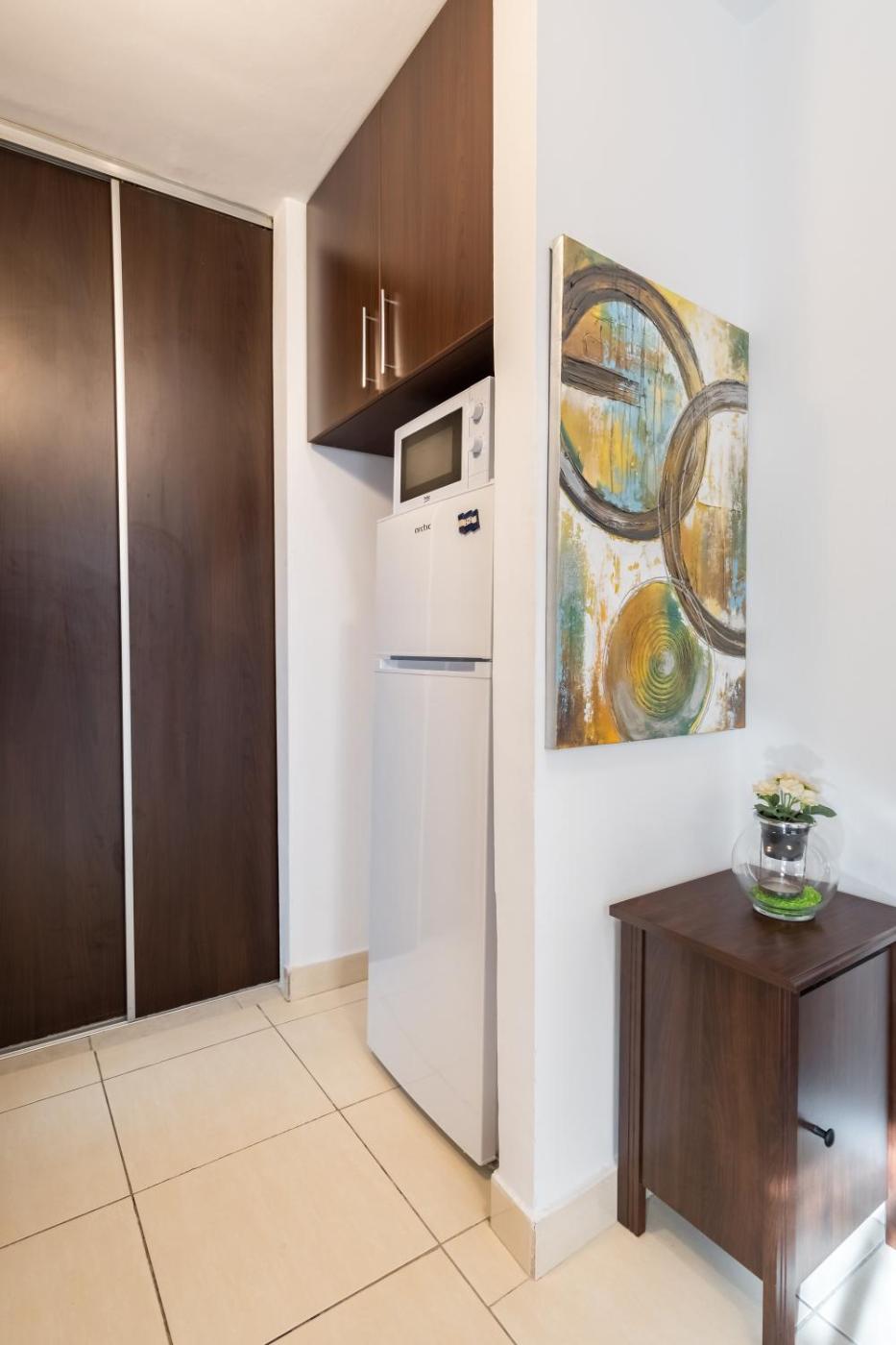 One-Bedroom Apartment. Boasting a private entrance, this air-conditioned apartment includes a kitchen, 1 bedroom and 1 bathroom with a bath and a shower. In the well-equipped kitchen, guests will find a stovetop, a refrigerator, kitchenware and an oven. Featuring a balcony with city views, this apartment also offers a washing machine and a flat-screen TV with streaming services. The unit has 1 bed.