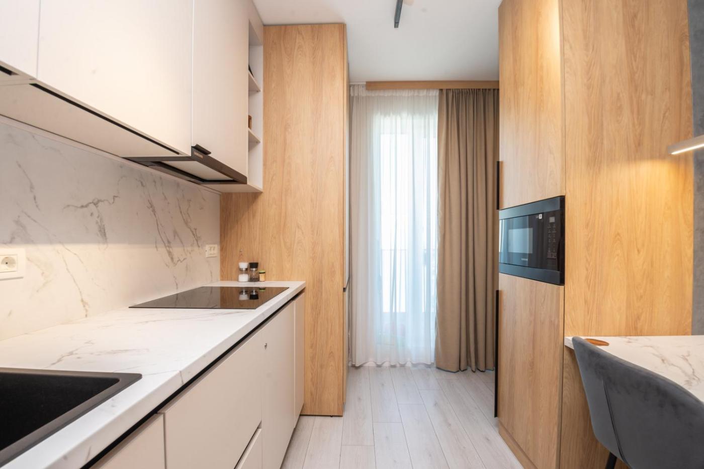One-Bedroom Apartment. Meals can be prepared in the well-fitted kitchenette, which comes with a stovetop, a refrigerator, a dishwasher and kitchenware. Featuring a balcony, this apartment also provides air conditioning, a washing machine and a flat-screen TV. The unit offers 1 bed.