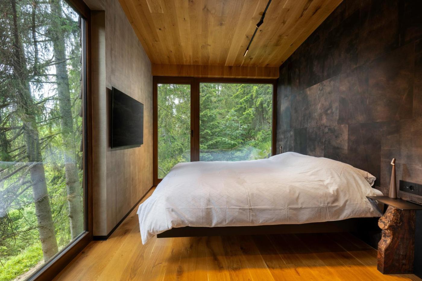 Three-Bedroom Chalet. This chalets special features are the hot tub and the fireplace. Featuring a private entrance, this chalet is comprised of 1 living room, 3 separate bedrooms and 2 bathrooms with a shower and a hairdryer. Guests will find a stovetop, a refrigerator, a dishwasher and kitchenware in the well-fitted kitchen. The chalet also has a barbecue. Boasting a terrace with garden views, this chalet also offers a washing machine and a flat-screen TV with streaming services. The unit offers 4 beds.