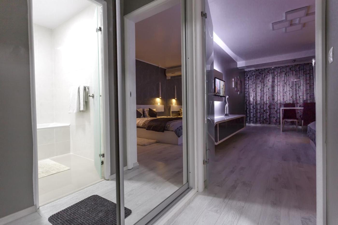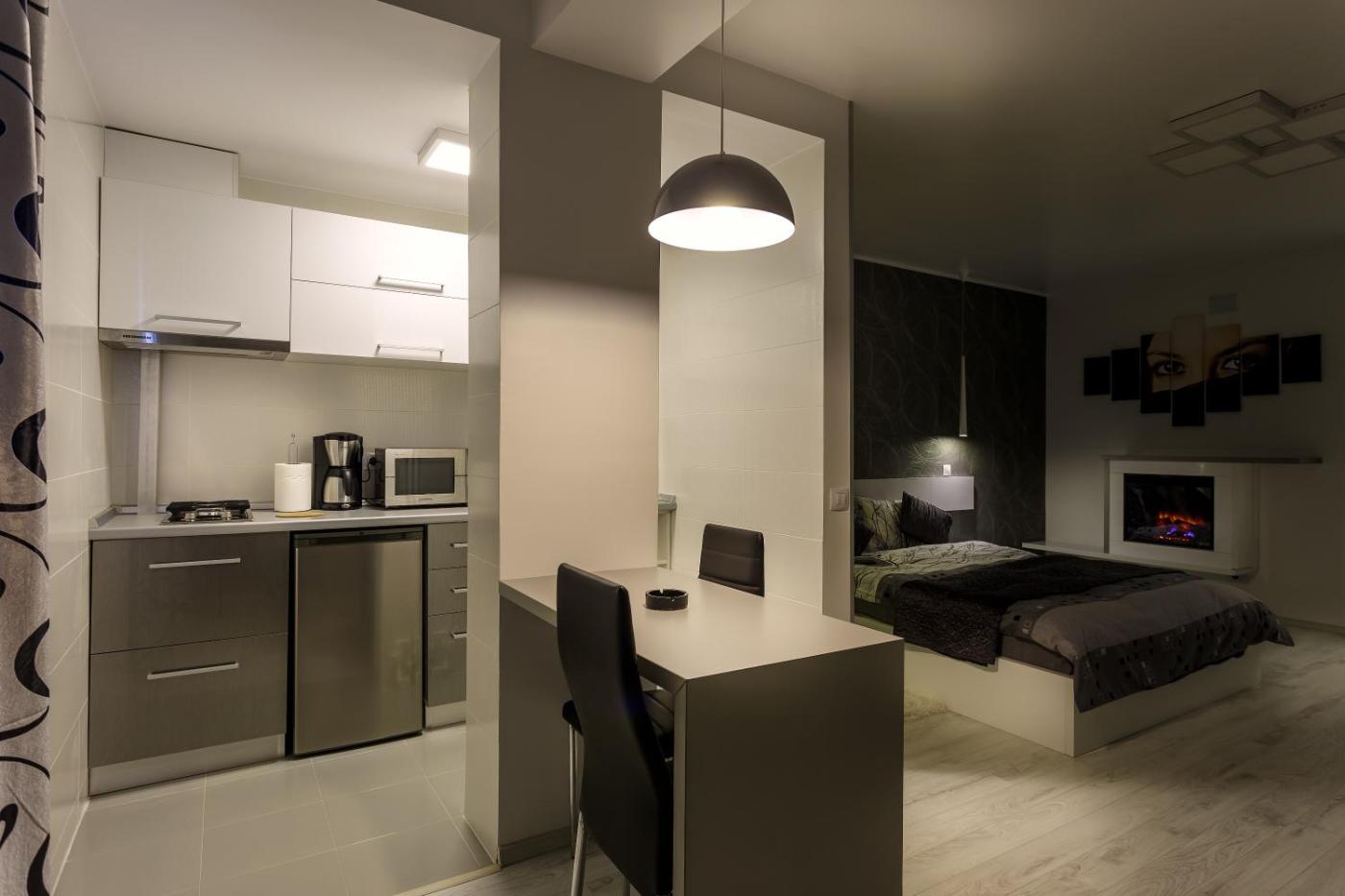 Apartment Onix Faleza. Air-conditioned unit with a flat-screen cable TV, a fireplace, free WiFi internet, a kitchen and separate bedroom with views of the Danube River.