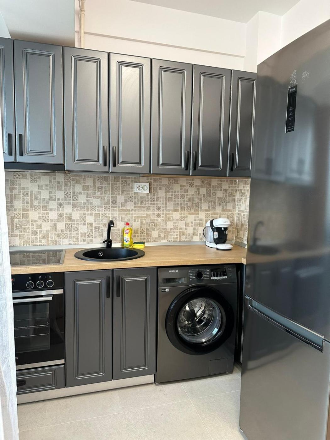 One-Bedroom Apartment. Boasting a private entrance, this air-conditioned apartment features 1 living room, 1 separate bedroom and 1 bathroom with a bath and a shower. The well-fitted kitchen has a stovetop, a refrigerator, kitchenware and an oven. The apartment features a flat-screen TV with satellite channels, a washing machine, soundproof walls, a tea and coffee maker as well as city views. The unit has 2 beds.