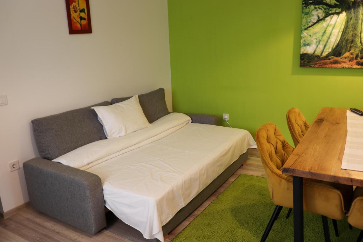 One-Bedroom Apartment. Boasting a private entrance, this apartment features 1 living room, 1 separate bedroom and 1 bathroom with a shower and a bidet. Guests will find a stovetop, a refrigerator, kitchenware and a microwave in the well-fitted kitchen. The apartment also comes with a barbecue. Featuring a terrace with mountain views, this apartment also features soundproof walls and a flat-screen TV with cable channels. The unit has 2 beds.