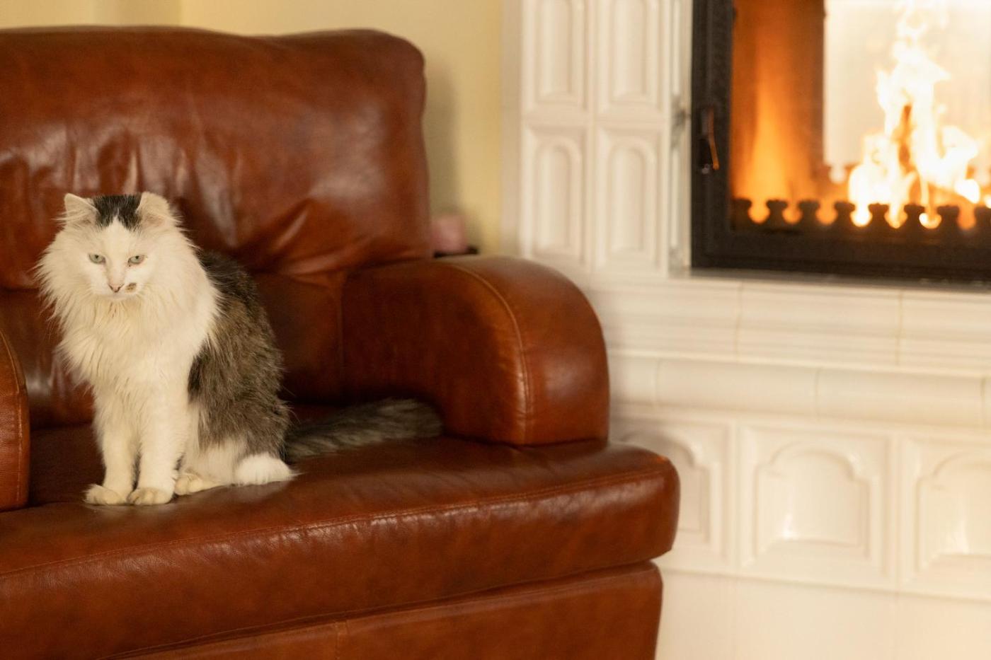 Guests can also warm themselves near outdoor fireplace after a day of skiing.
