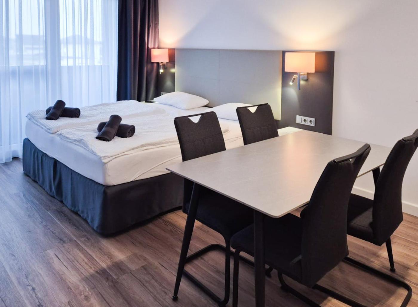 Deluxe Studio. The studio has a private bathroom, a washing machine, a private entrance, as well as a seating area with a flat-screen TV. Meals can be prepared in the well-fitted kitchen, which has a stovetop, a refrigerator, kitchenware and an oven. The studio offers a coffee machine, heating and a balcony. The unit has 2 beds. ;